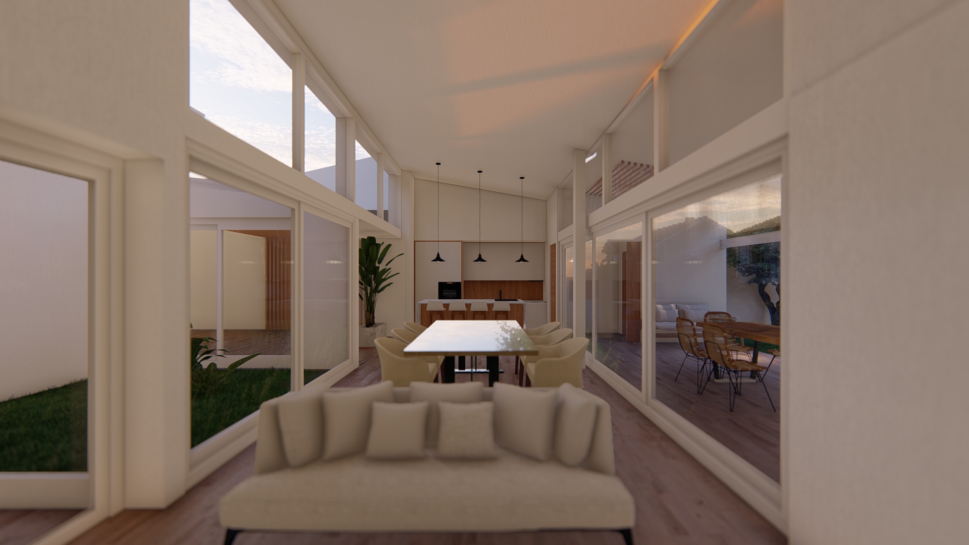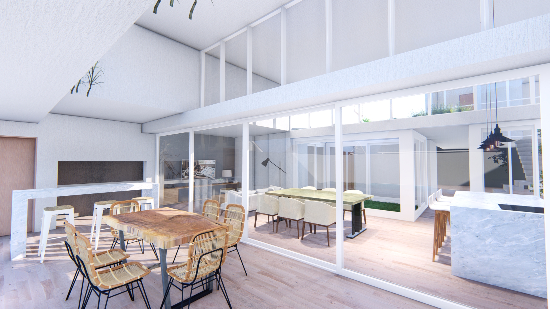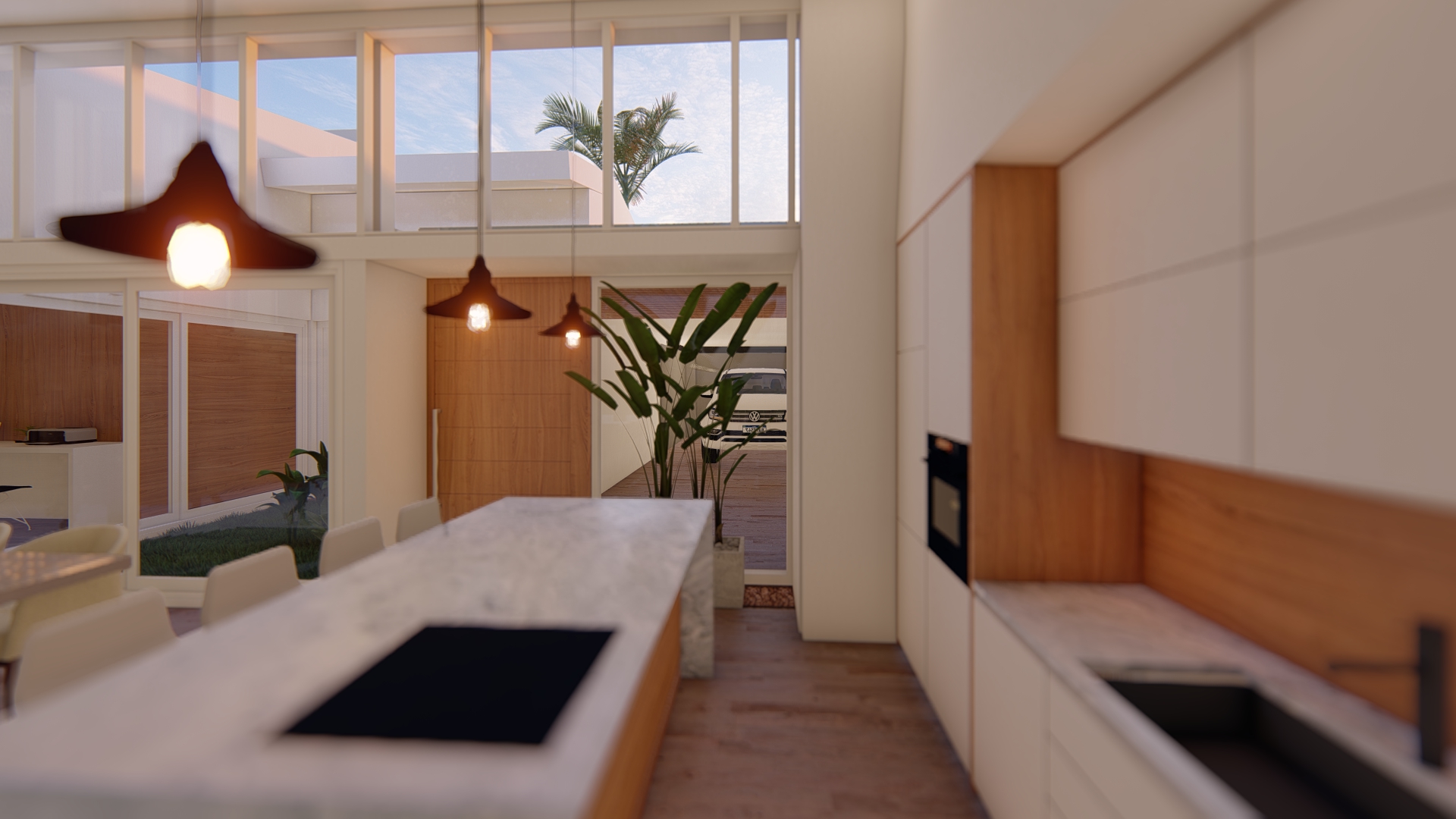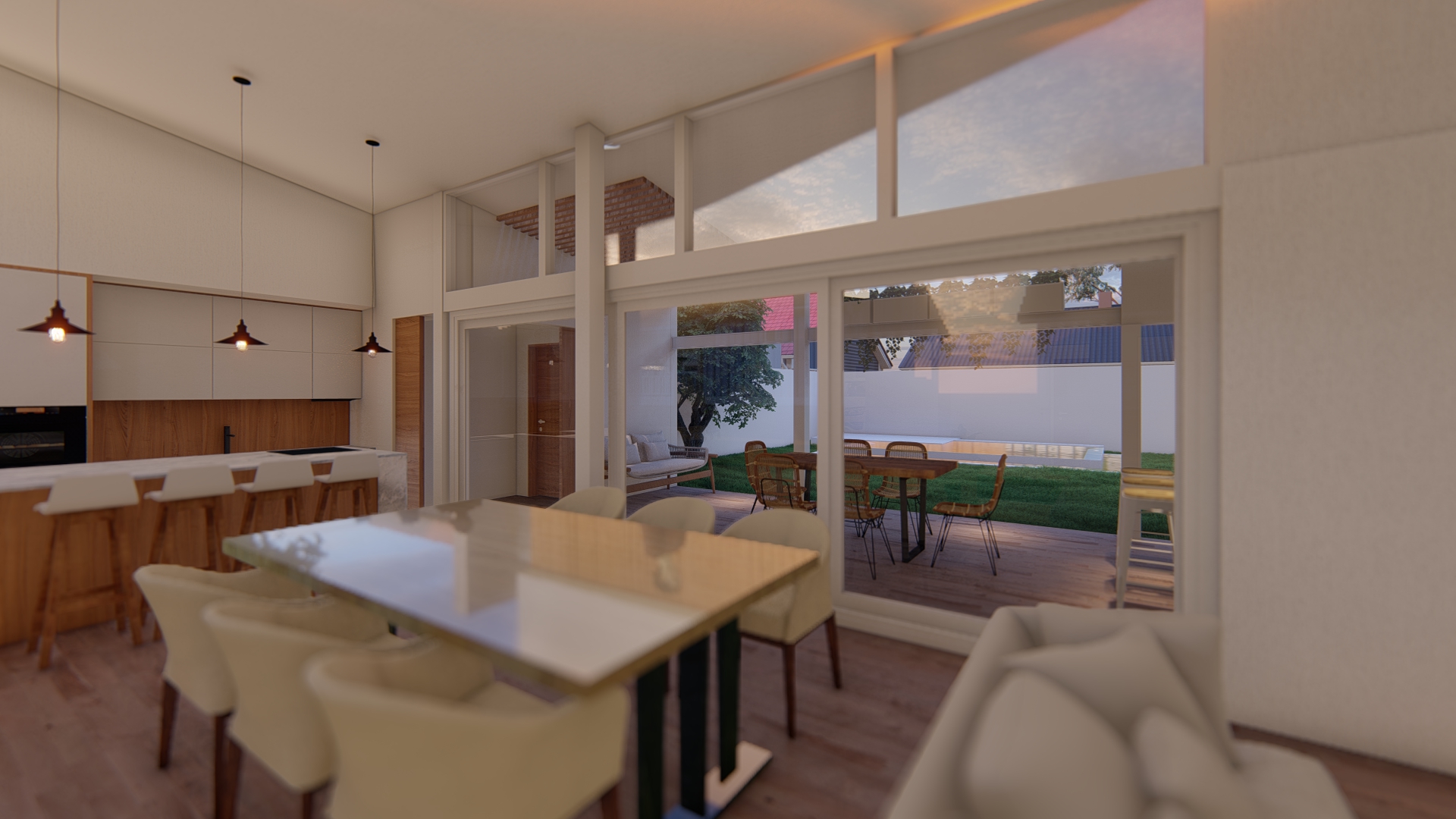 Desde la neuroarquitectura, el proyecto busca generar bienestar real en la vida cotidiana. Abrimos los espacios para que la casa respire, fluya y se adapte a distintas formas de habitar. La luz natural se convierte en protagonista, ingresando en profundidad y ordenando cada ambiente.