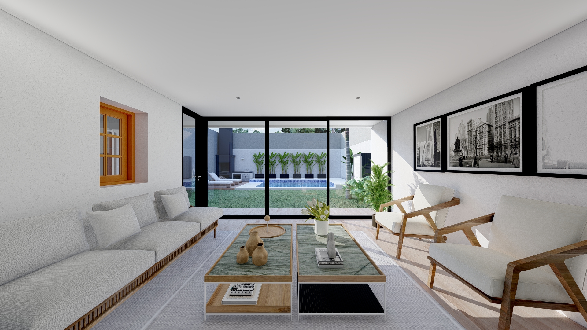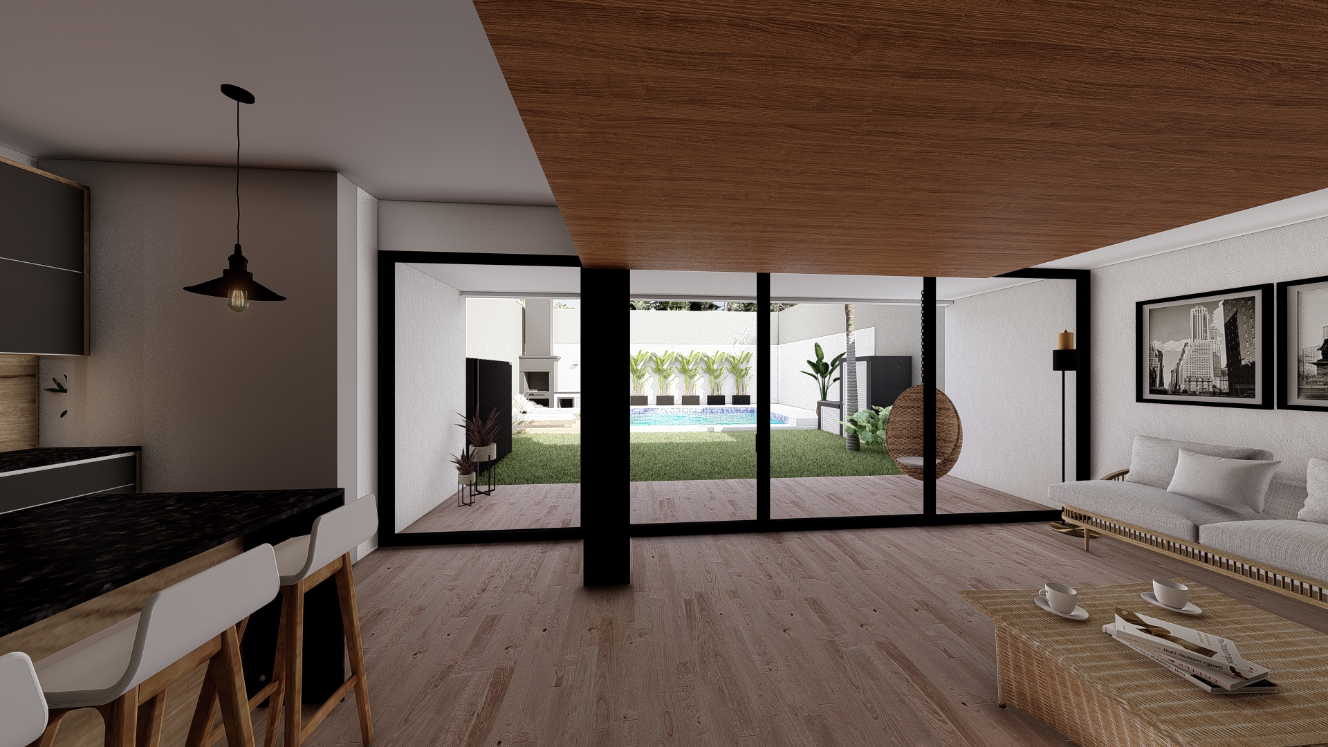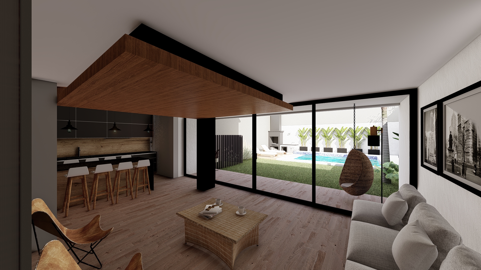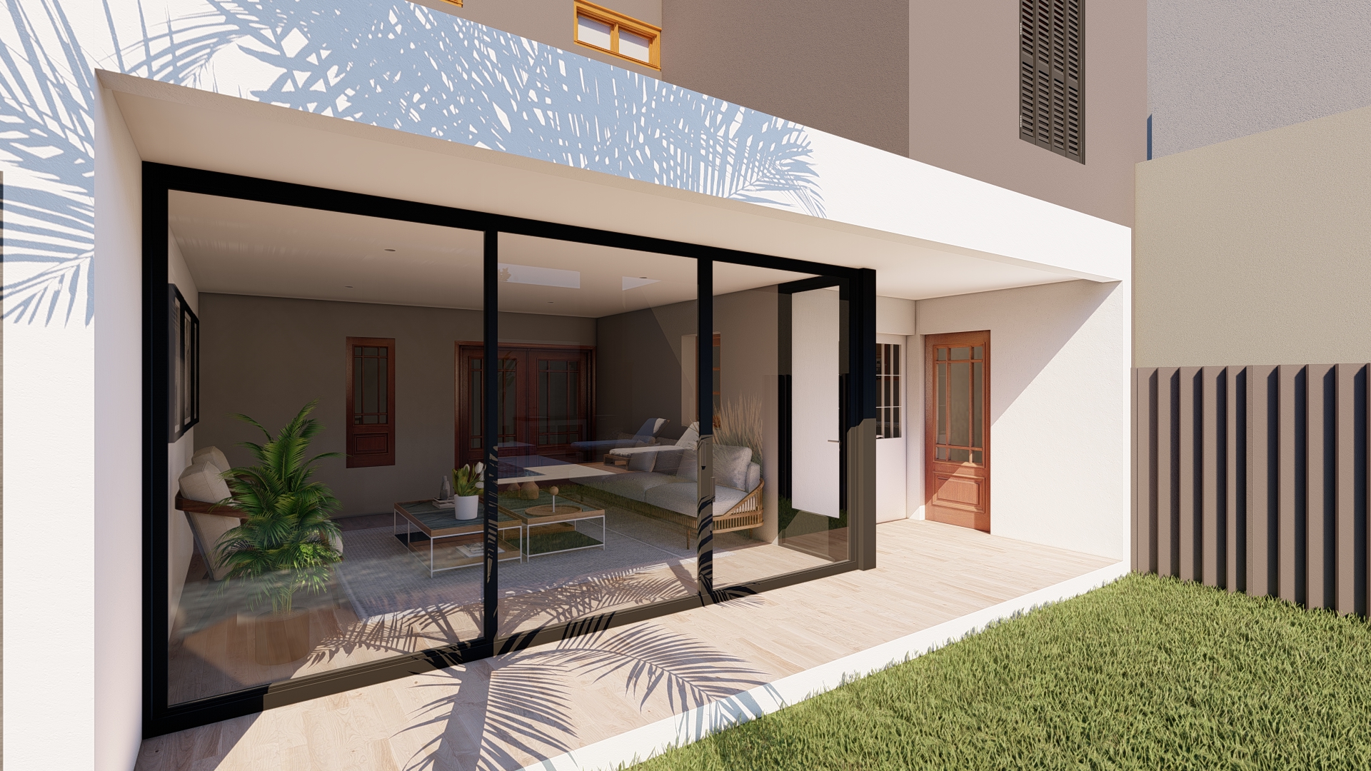 La intervención se centra en consolidar el área social como núcleo integrador, vinculándola con un nuevo espacio de expansión que potencia la relación entre interior y exterior. Se incorpora una galería flexible, concebida como un espacio intermedio capaz de adaptarse a distintas situaciones de uso, funcionando tanto como extensión del estar como área de resguardo y transición.
