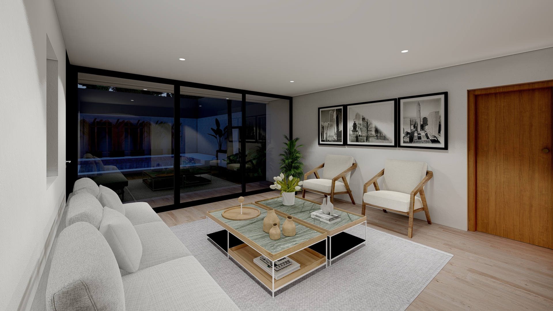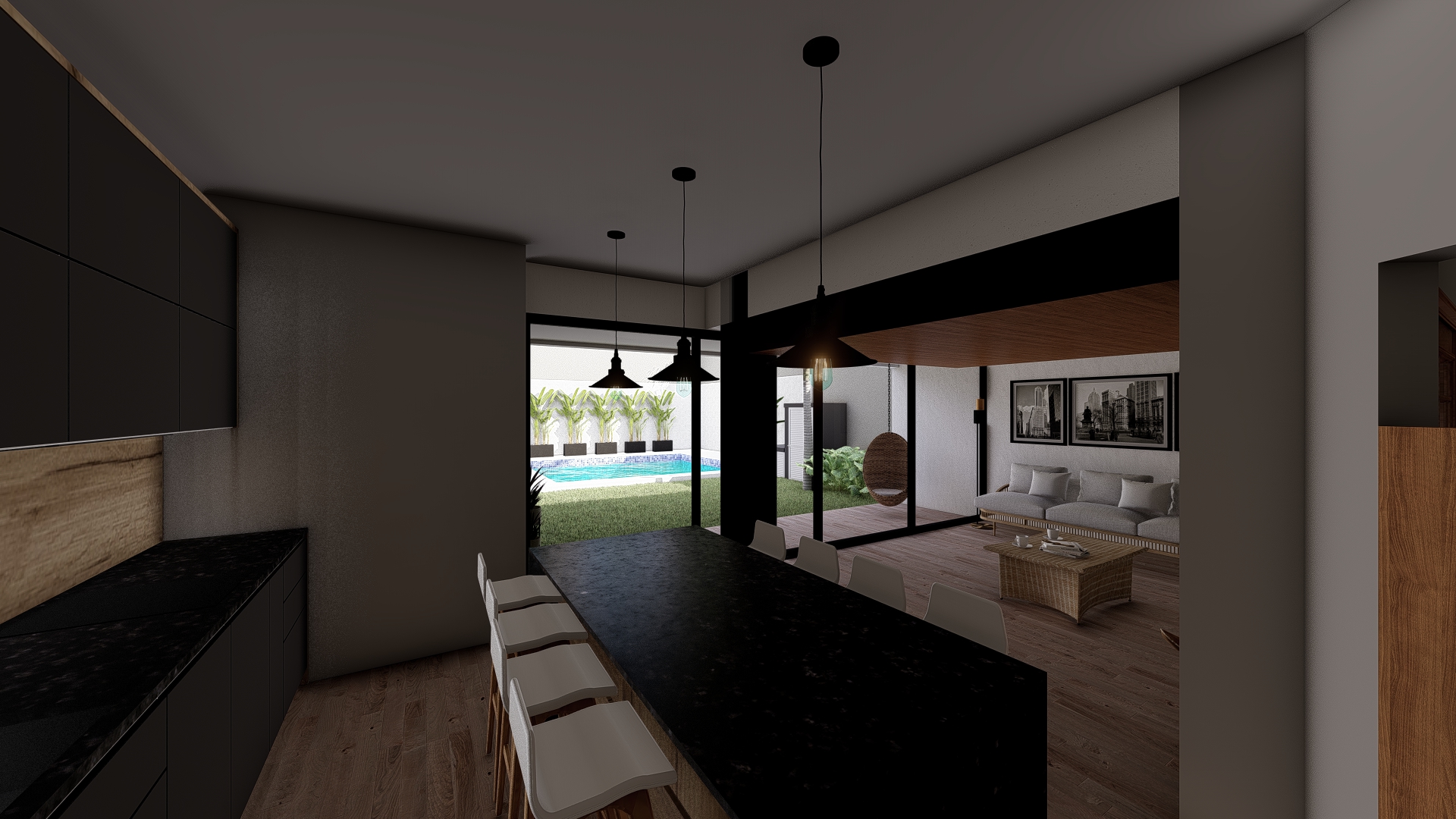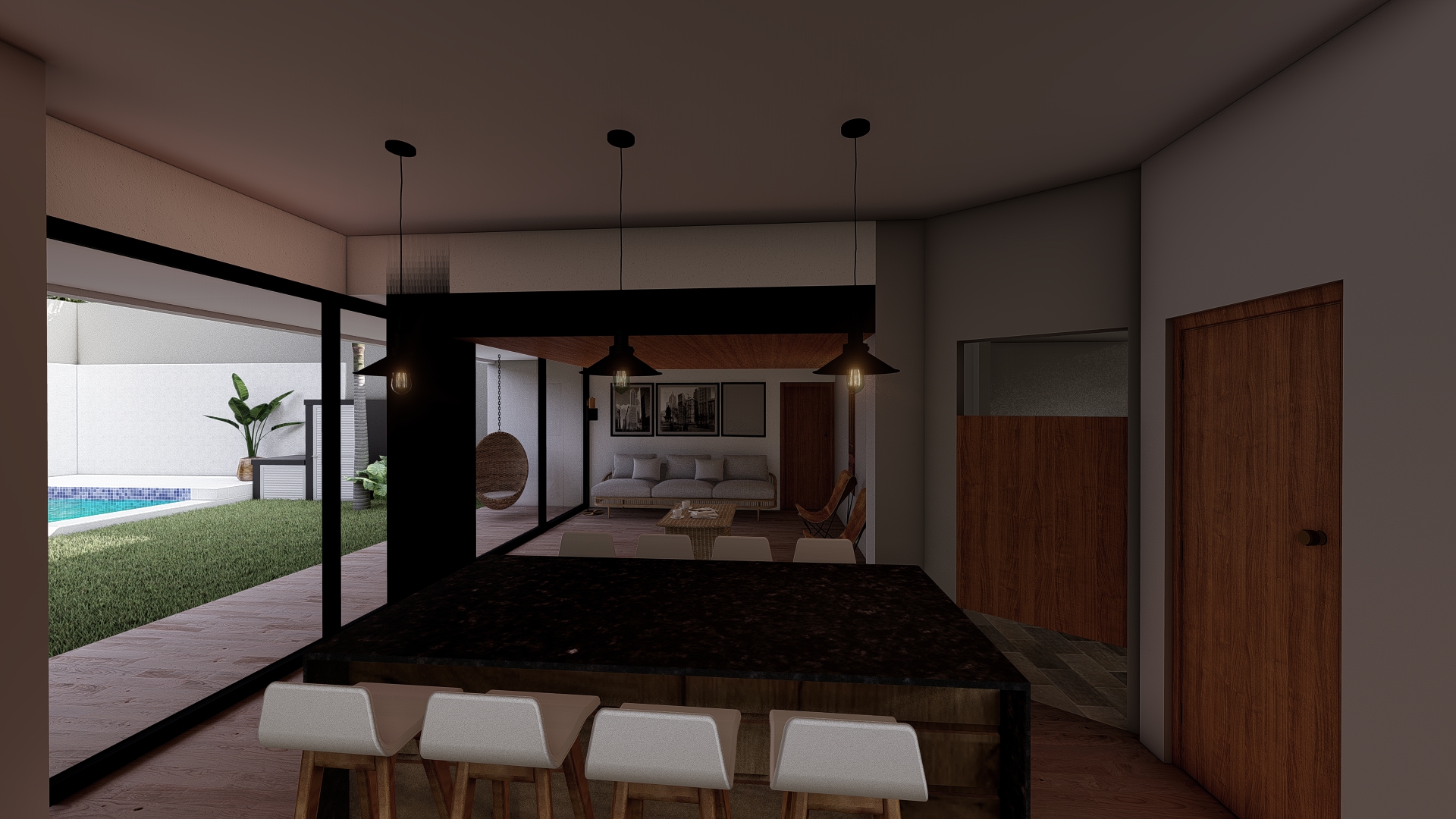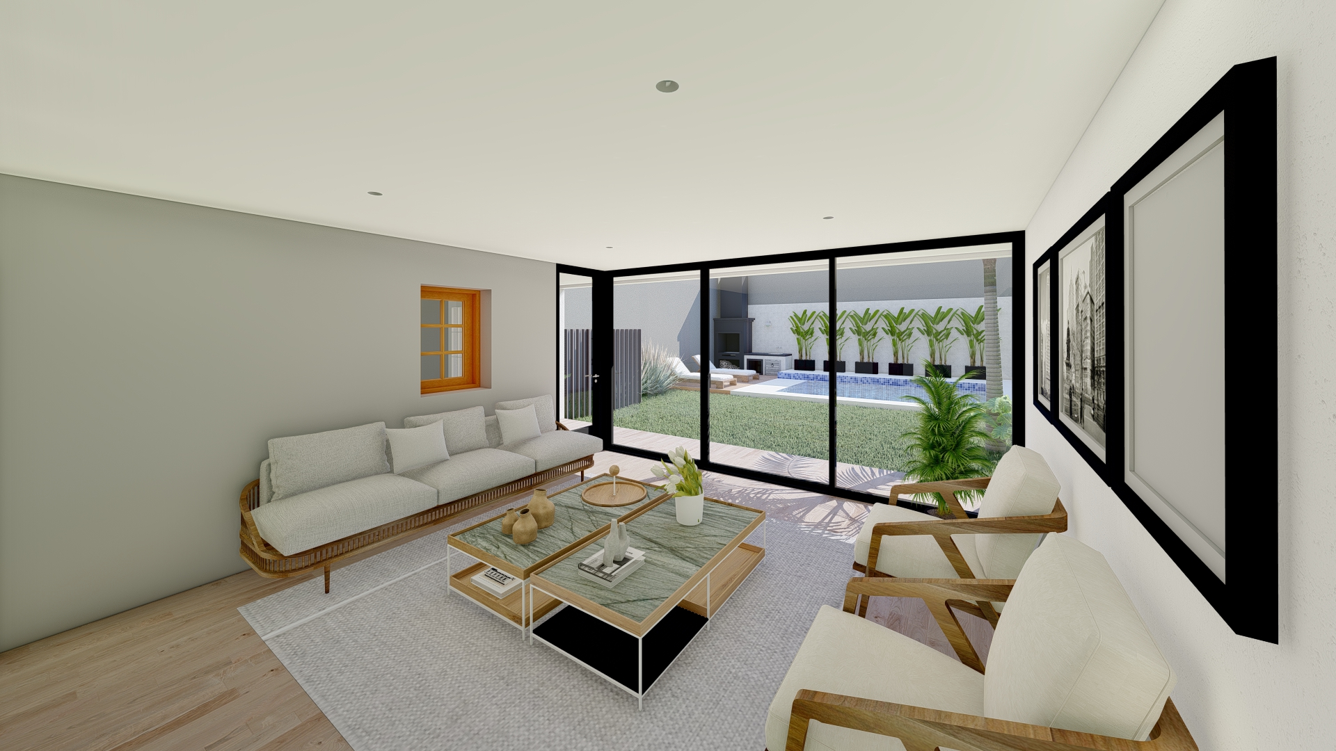 La intervención se centra en consolidar el área social como núcleo integrador, vinculándola con un nuevo espacio de expansión que potencia la relación entre interior y exterior. Se incorpora una galería flexible, concebida como un espacio intermedio capaz de adaptarse a distintas situaciones de uso, funcionando tanto como extensión del estar como área de resguardo y transición.